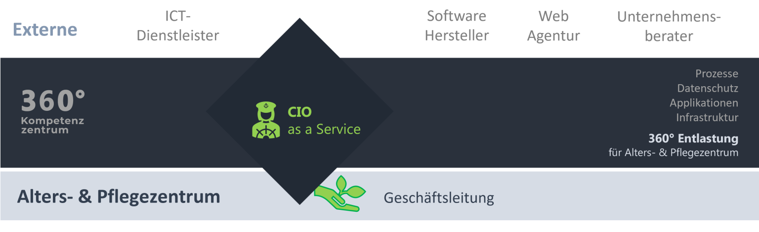Als 360° Kompetenzzentrum unterstützen wir Alters- und Pflegeeinrichtungen mit CIO as a Service.